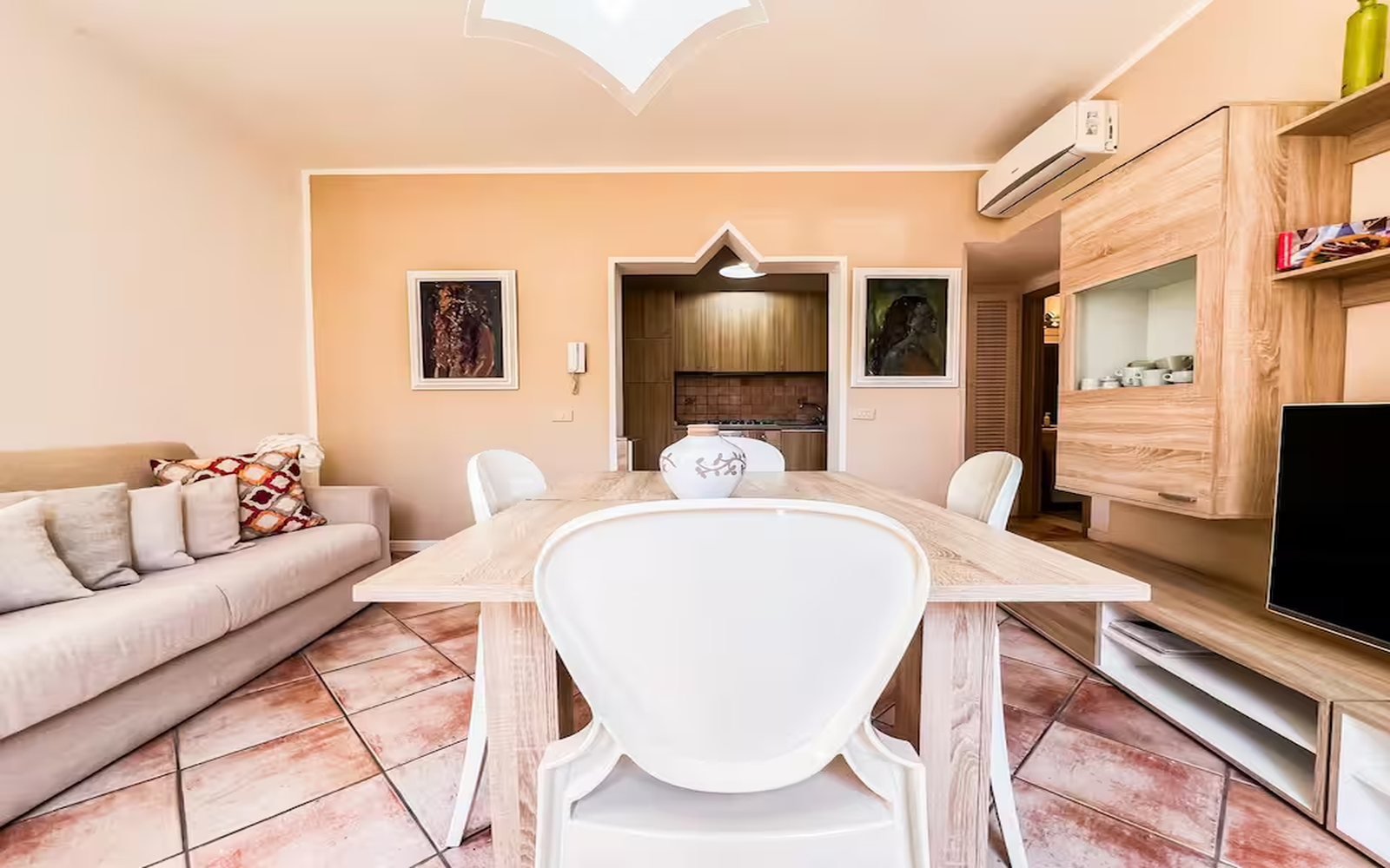 Appartamento al piano terra con ingresso separato e giardino, ideale per coppie o famiglie fino a 4 persone. Ampio soggiorno con cucina indipendente, camera matrimoniale, divano letto, bagno con vasca e doccia. Dotato di lavatrice, lavastoviglie, aria condizionata e WiFi gratuito. Posizione perfetta per raggiungere spiagge e Costa Smeralda mantenendo la comodità dei servizi cittadini.