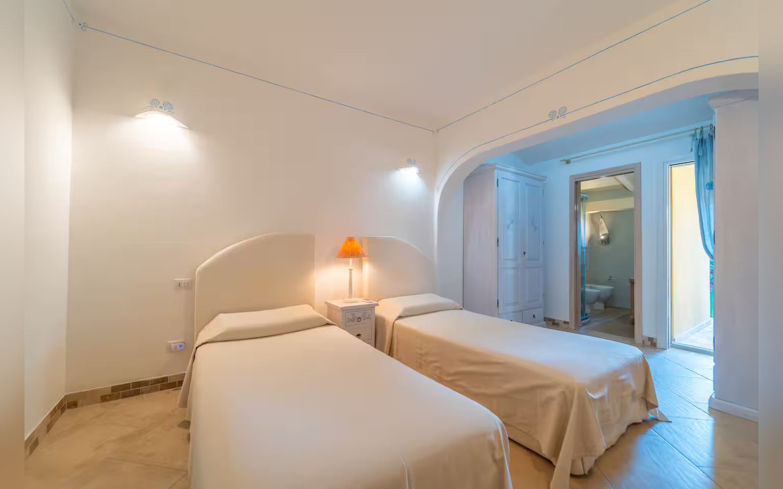 Villa elegante inserita nel villaggio Baja Turchese, a soli 250 metri dalla spiaggia e a 5 minuti dall’aeroporto e dal porto di Olbia. Dispone di due camere da letto, due bagni con doccia, cucina attrezzata interna ed esterna, ampio giardino fronte mare con gazebo salotto e secondo giardino con area colazione privata. Presente doccia esterna in muratura con acqua calda e climatizzazione autonoma in ogni ambiente. Ideale per famiglie fino a 5 ospiti che cercano privacy, relax e comfort a pochi passi dal mare.