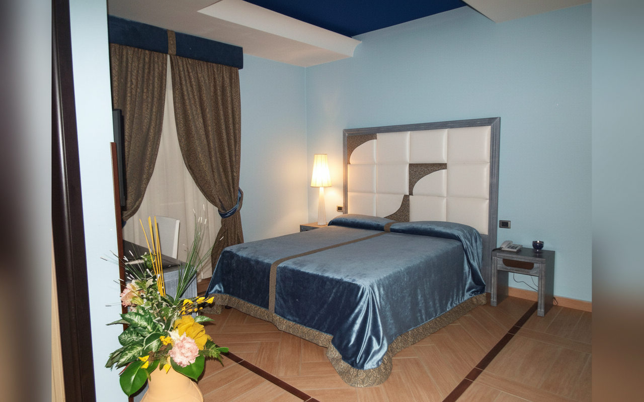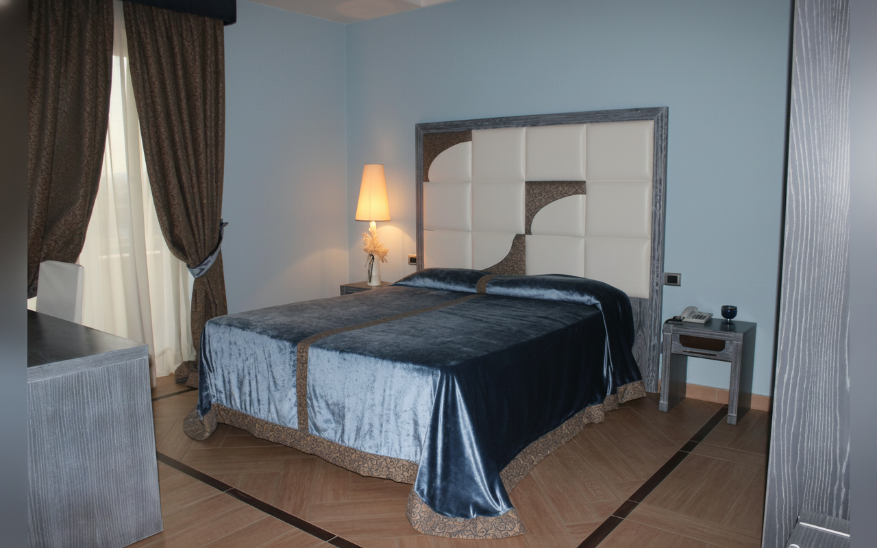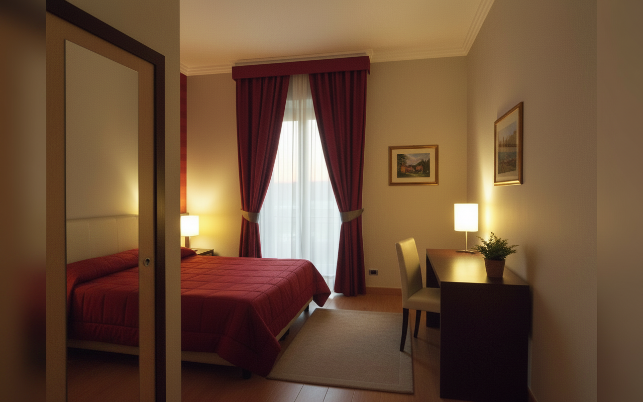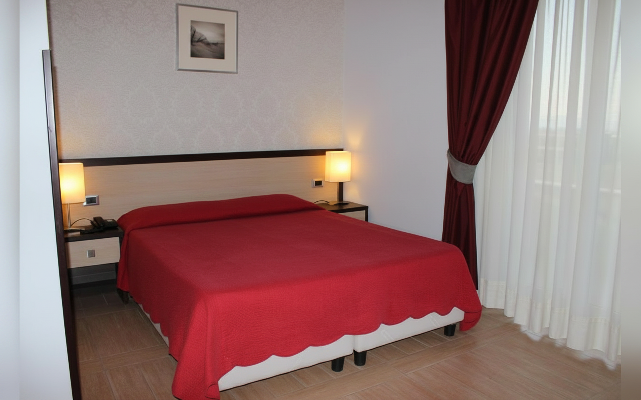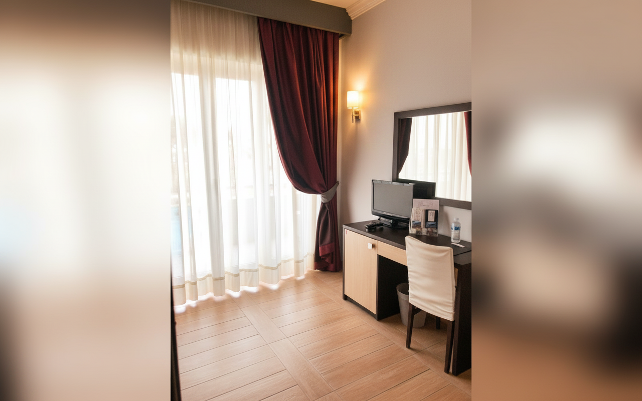 Camera business configurabile con letto matrimoniale o due letti singoli, dotata di aria condizionata, Wi-Fi gratuito, minibar, scrivania e bagno privato con bidet. Ideale per soggiorni di lavoro o brevi vacanze.