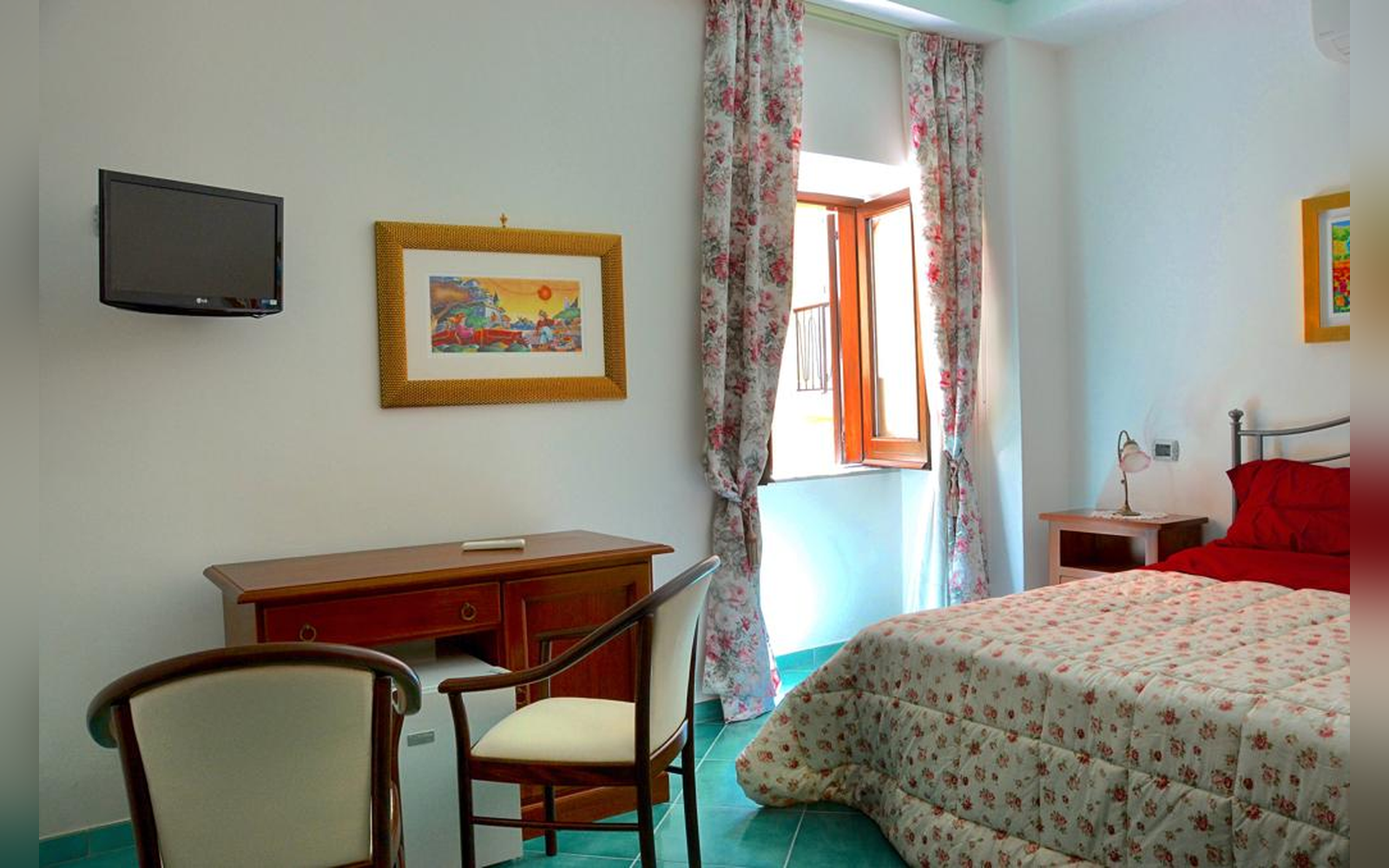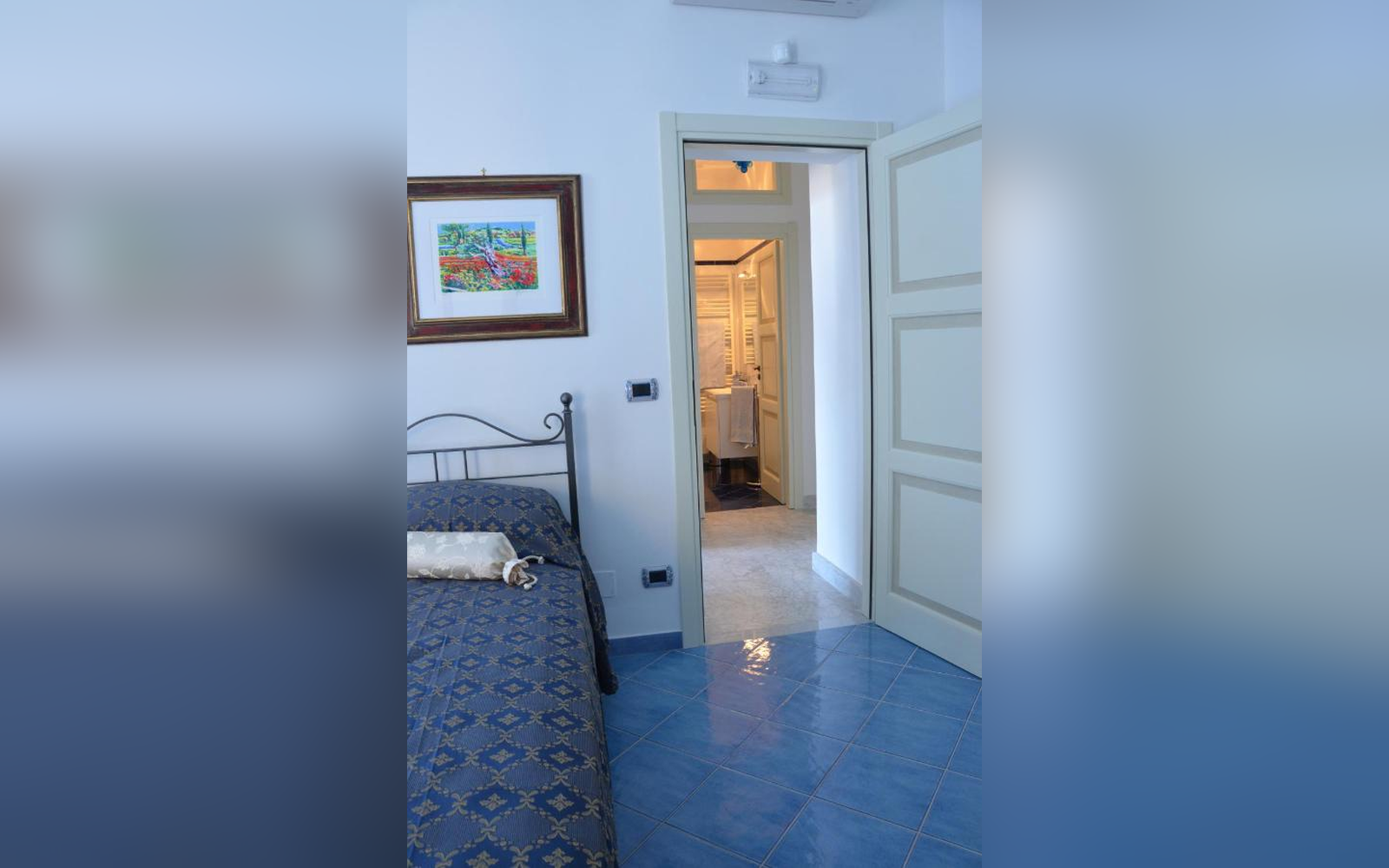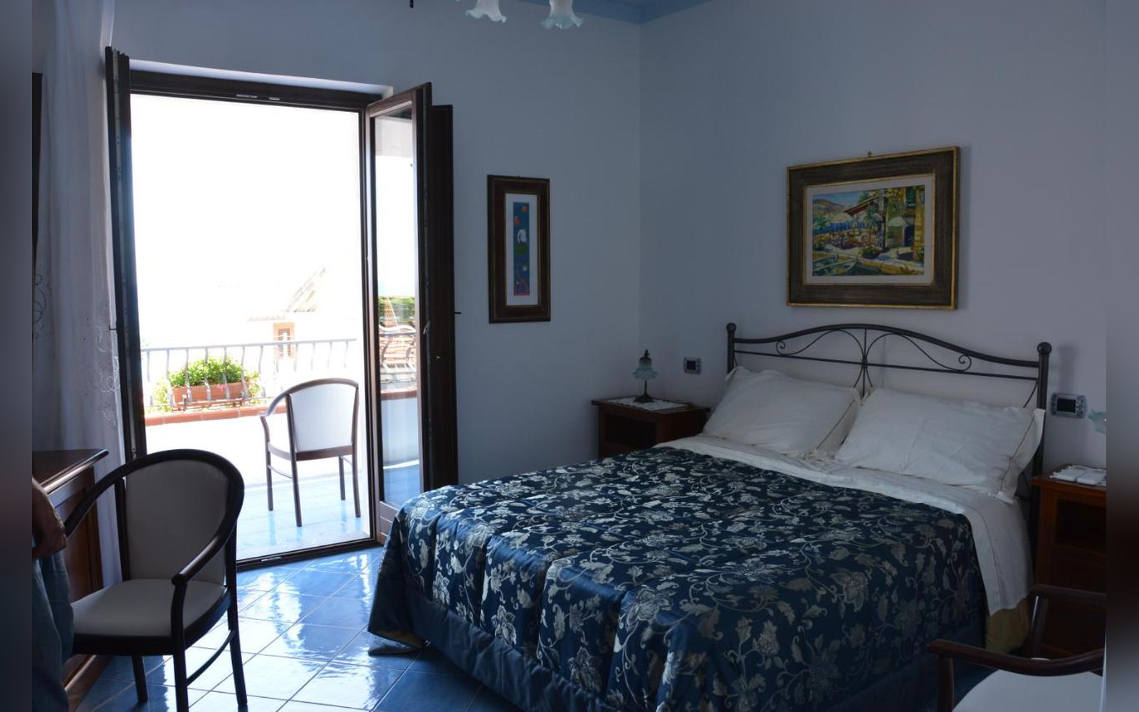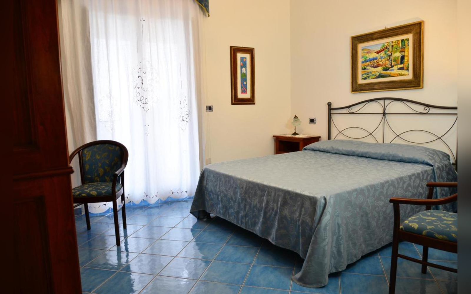 Situata al primo piano, questa ampia camera matrimoniale di 30 mq offre una splendida vista sul mare e sulla città. Dotata di balcone, bagno privato e aria condizionata, è perfetta per chi desidera svegliarsi con il mare davanti agli occhi e vivere un soggiorno rilassante in totale comfort.