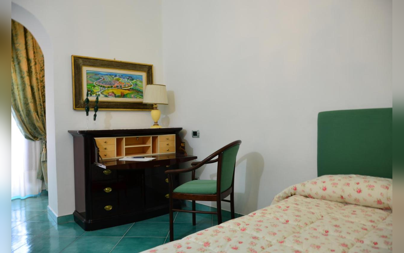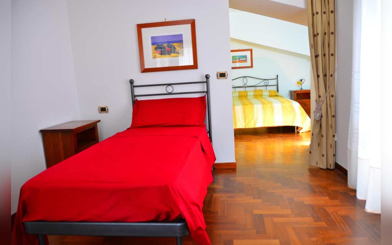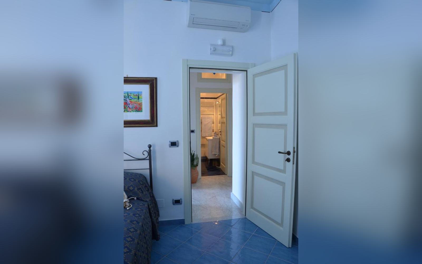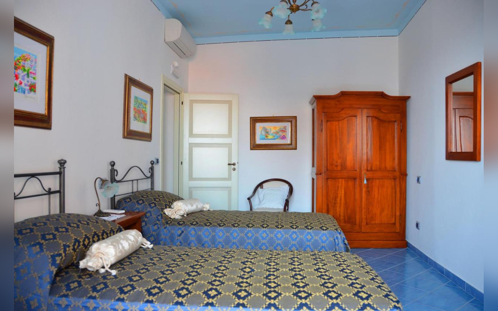 Situata al primo piano, questa ampia camera matrimoniale di 30 mq offre una splendida vista sul mare e sulla città. Dotata di balcone, bagno privato e aria condizionata, è perfetta per chi desidera svegliarsi con il mare davanti agli occhi e vivere un soggiorno rilassante in totale comfort.