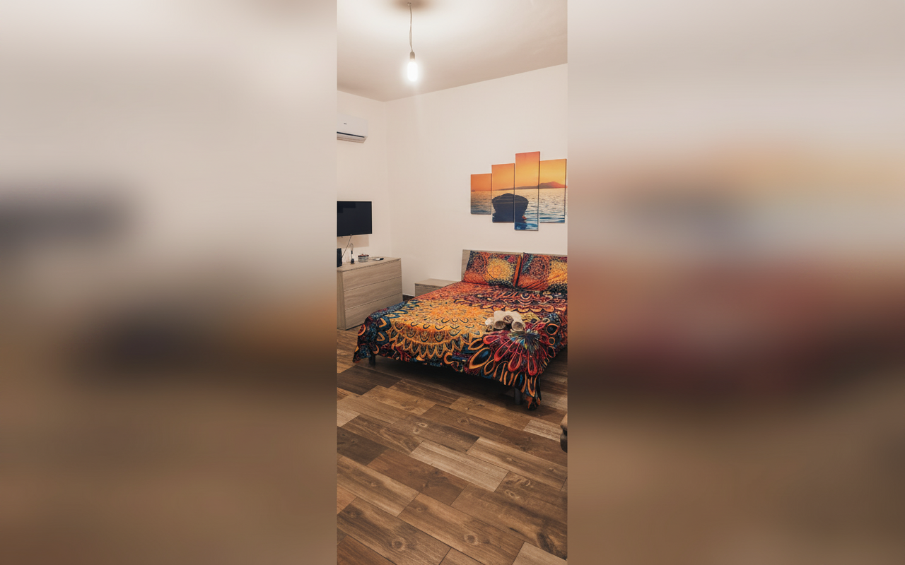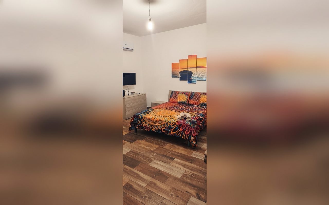 Appartamento spazioso e luminoso, dotato di una camera matrimoniale, soggiorno con divano letto, cucina completa e bagno privato. Ideale per coppie o famiglie fino a 4 persone, offre una vista panoramica sul mare e tutti i comfort per un soggiorno rilassante.
