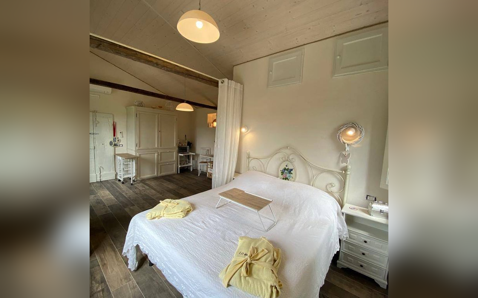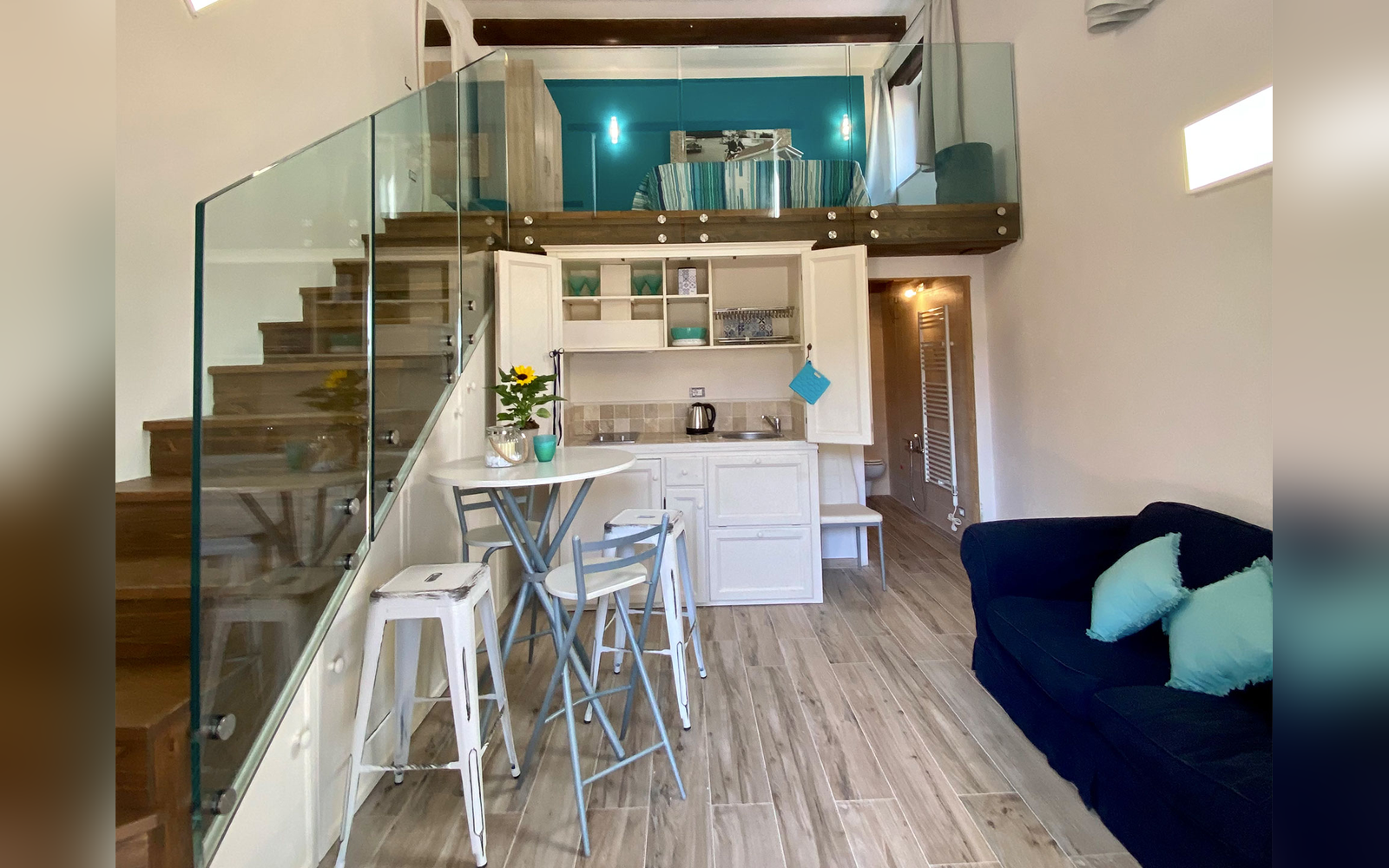 Una raffinata riconversione dello storico essiccatoio, recentemente restaurata. Dispone di letto matrimoniale sul soppalco, angolo cottura completamente attrezzato, ampio bagno e zona soggiorno con divano letto. Dal living si accede al patio privato per mangiare all’aperto immersi nel verde. Ideale per 2/3 persone, con possibilità di organizzare servizi per ospiti disabili su richiesta.